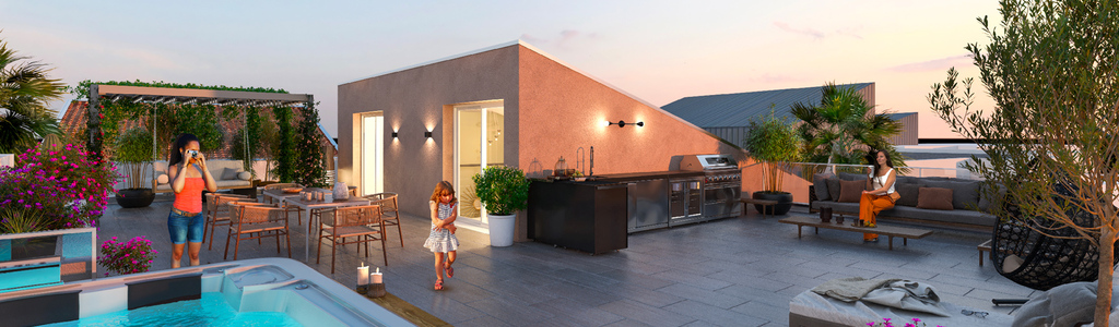 C'est dans ce cadre idéal que la résidence Ischia dévoile une architecture sobre, élégante et aérienne, agencée autour d'un cœur d'îlot végétal, qui respecte le contexte local (toiture tuile en pente, pierre en sousbassement, façades aux enduis clairs...), sans délaisser pour autant le bien-être contemporain (toits terrasses accessibles, jardin commun en pleine terre, volets coulissants persiennés...). Avec ses proportions équilibrées et sa matérialité durable, Ischia pose les bases d'une architecture intemporelle.